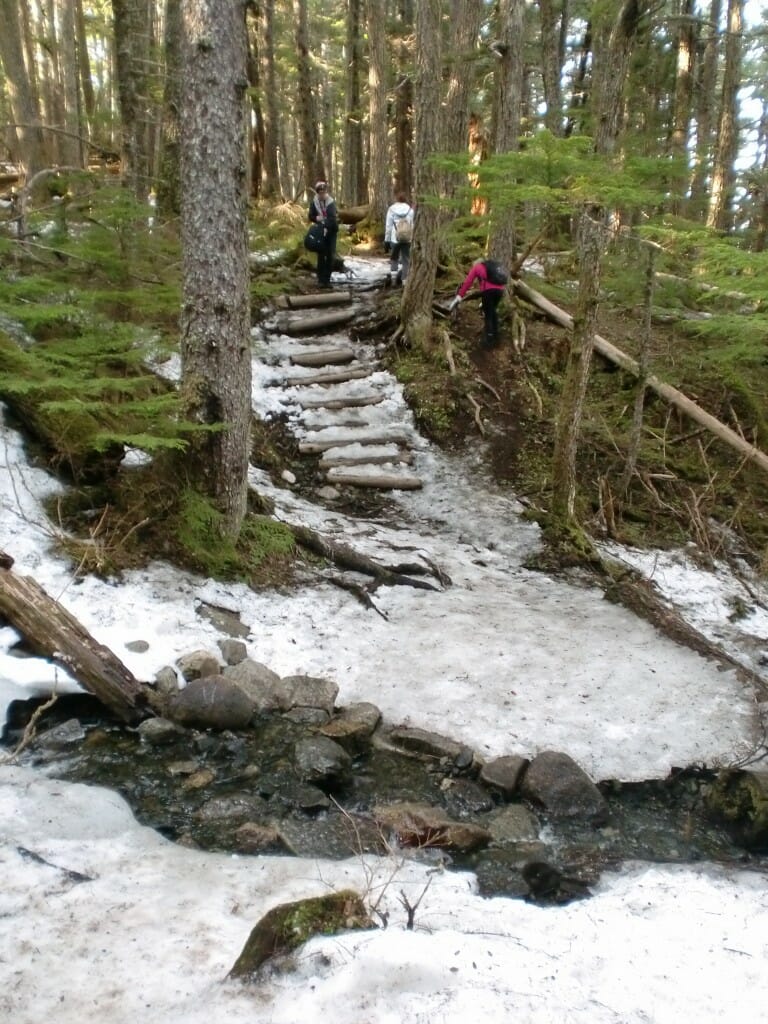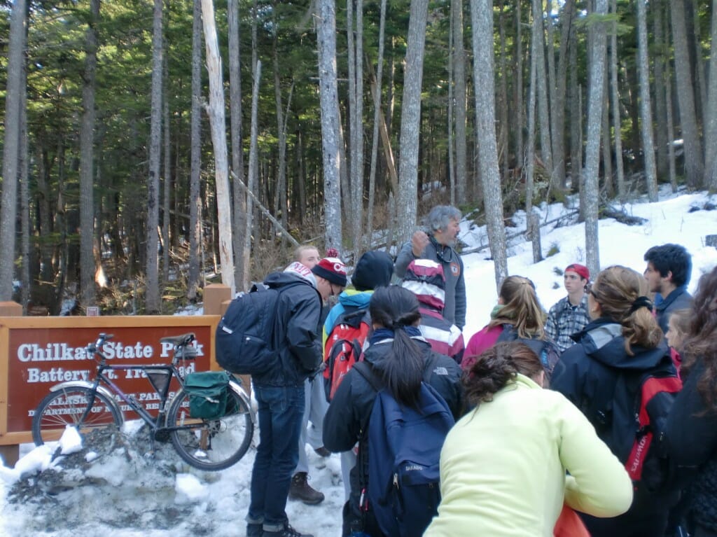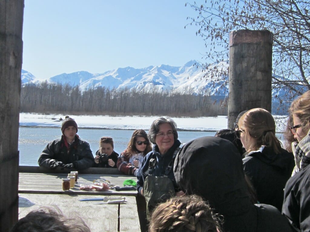 Rainbow Glacier Adventures had our first tour on Friday, April 6th. A few of us RGA Guides got to go along to help Joe Ordonez while he treated a group of 24 French Canadian high school students from Montreal to a highly entertaining two day tour. He is a very knowledgeable guide. I guess that is why he owns Rainbow Glacier Adventures Tour Company, which has the bragging rights of having solely Haines, Alaska locals as guides. Joe O. is an animated man and tells Haines history with an adventurous spirit.