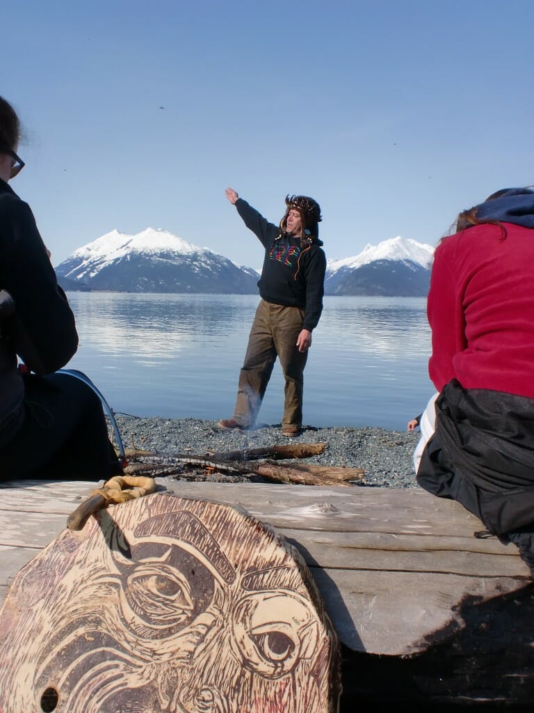 Many of the stories I had not heard before, as only a Tlingit can tell them. I heard they do not like others telling certain stories of theirs. I can see why, there is something special about hearing of Tlingit warriors from their own descendant. Our imagination was ignited while sitting on logs at the beach, with Lynn Canal and mountains in the background, listening to a Tlingit sing and chant the stories of his ancestors.