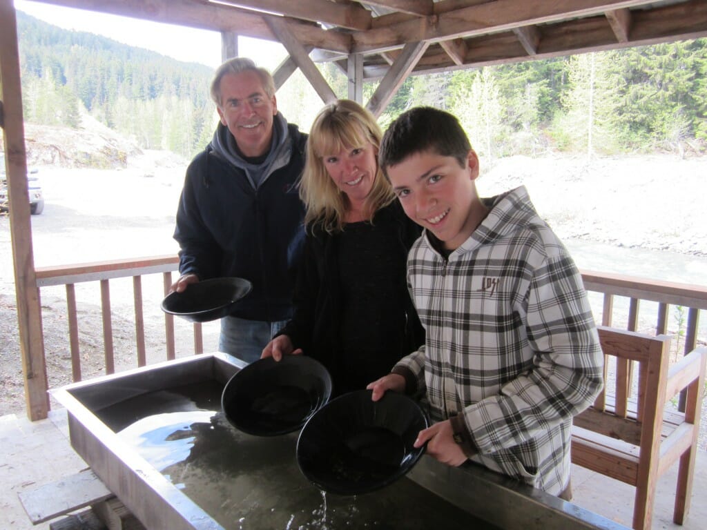 RGA’s Gold Rush to Porcupine tour has exclusive access to Schnabel’s Mine for the 2nd year in a row. This tour is not sold on the Cruise Ship. That means our Gold Mining tour stays personal and intimate. The Hatfield’s & Kilpatrick’s (from Alabama) had the unique opportunity to visit with Parker one on one. Since the group of 11 was too big to pan all at once we split them up, me taking one half of the family to the panning trough to try their luck at finding rich pay dirt while the other half visited with Parker near his gold wash plant.